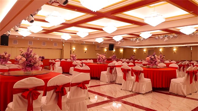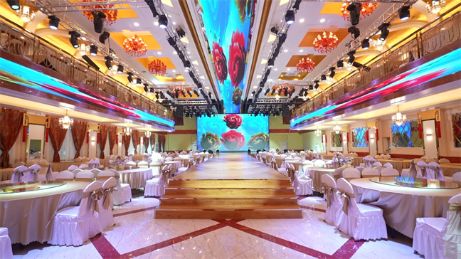 鉑金大廳—色彩濃烈,現(xiàn)代式裝修,面積560㎡,層高6米,開合大屏配合舞美燈光,唯美震撼,可承接30桌的中型宴會(huì);12米長的可移動(dòng)T臺收起后,就變成了可容納400人同時(shí)落座的大型多功能會(huì)議室。