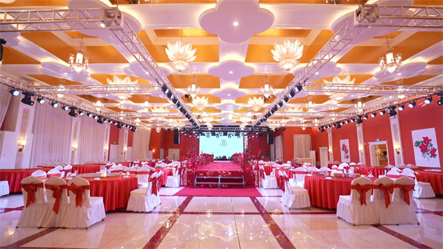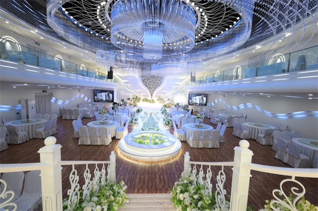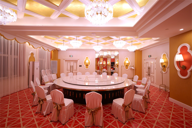 皇宮廳—金碧輝煌、皇宮式裝修,面積1038㎡,層高8.6米,配備愛情階梯、軌道威亞、二層觀禮臺、浪漫燈光秀、旋轉(zhuǎn)升降舞臺、頭頂天幕連接開合大屏。可承接50桌的大型宴會(huì),也可舉辦600人的大型會(huì)議;還可用作會(huì)展、車展場地,每逢節(jié)假日還為市民上演文藝節(jié)目。